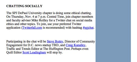 As part of its required Ethics programming, SPJ DePaul played host to a Twitter chat titled “Social Media and Ethics” on Nov. 4.