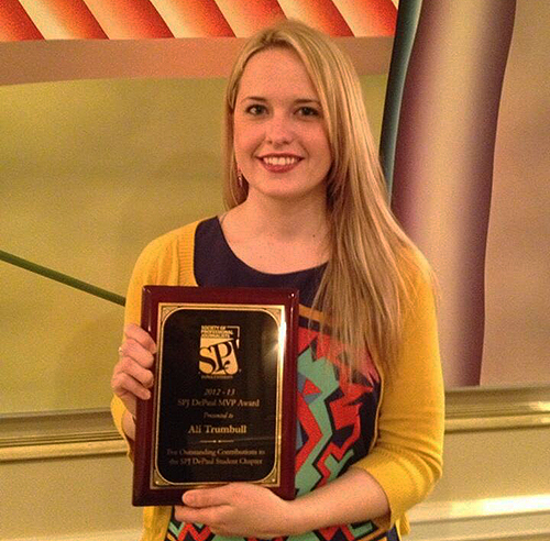 Trumbull, who received a master’s degree in journalism, has been a three-year DePaul executive board member and was one of the founding members. Besides president, she also served as events coordinator and PR/membership director.