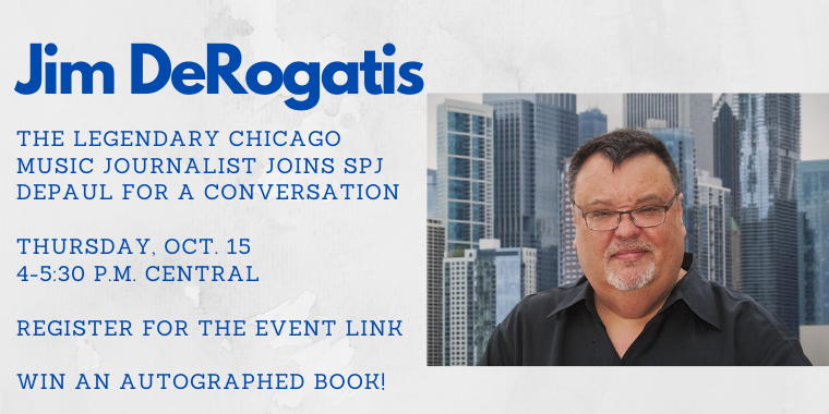 On Thursday, Oct. 15, 4-5:30 p.m. Central, please join SPJ President Joanna Talabani for a Q&A with legendary Chicago music journalist Jim DeRogatis.
